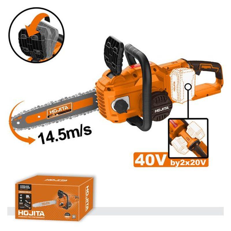 Το αλυσοπρίονο μπαταρίας 40V (20V+20V) με λάμα 40cm είναι ένα ισχυρό εργαλείο για κοπές ξύλων και κλαδέματα με ακρίβεια και αποτελεσματικότητα. Η ταχύτητα αλυσίδας φτάνει τα 14,5m/s, προσφέροντας γρήγορες και καθαρές κοπές. Ο brushless κινητήρας εξασφαλίζει μεγαλύτερη απόδοση και αντοχή, ενώ η αυτόματη λίπανση της αλυσίδας διευκολύνει τη συντήρηση και τη λειτουργία του εργαλείου. Η λειτουργία φρένων Quick Chain προσφέρει αυξημένη ασφάλεια κατά τη χρήση.