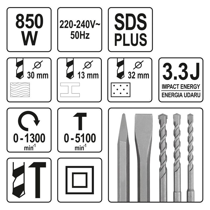 Κρουστικό Σκαπτικό Ρεύματος 850W YT-82122 – Yato SDS Plus