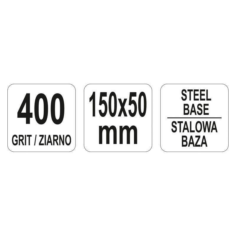 Μέγεθος κόκκου 400, κόκκος σε σταθερή χαλύβδινη πλάκα 150 x 50 x 4 mm.