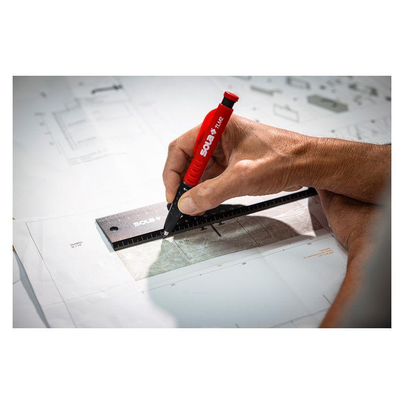 - Εφαρμόσιμο ως χάρακας με συνεχή κλίμακα mm/cm και στις δύο λεπίδες