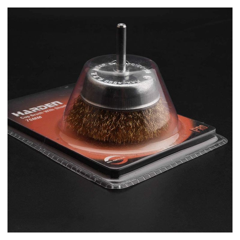 Συρματόβουρτσα με Άξονα για Δράπανο, Καμπάνα Harden 611529 75 mm (1/4″)